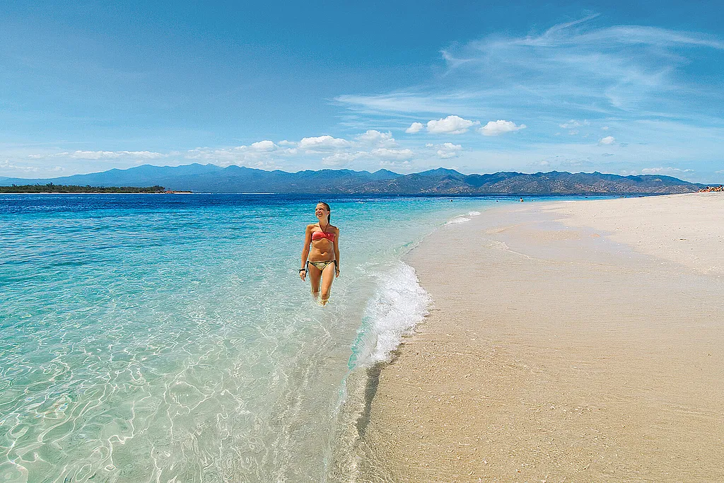 Départ pour Gili Trawangan, joyau posé sur la mer, accessible après une courte traversée. Ici, pas de voitures, ni de stress : le temps suit le rythme des vagues. Installation au Pondok Santi, une adresse raffinée en bord de plage, entre cocotiers et jardins tropicaux. L’ambiance est bohème et détendue, ponctuée de cafés en bord de mer, de petites boutiques et de bars chaleureux. Un cadre idéal pour prolonger le rêve tropical.